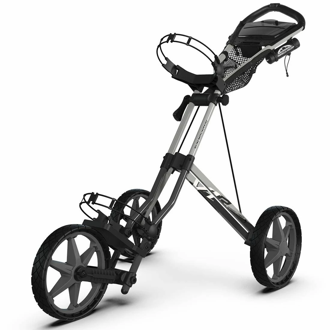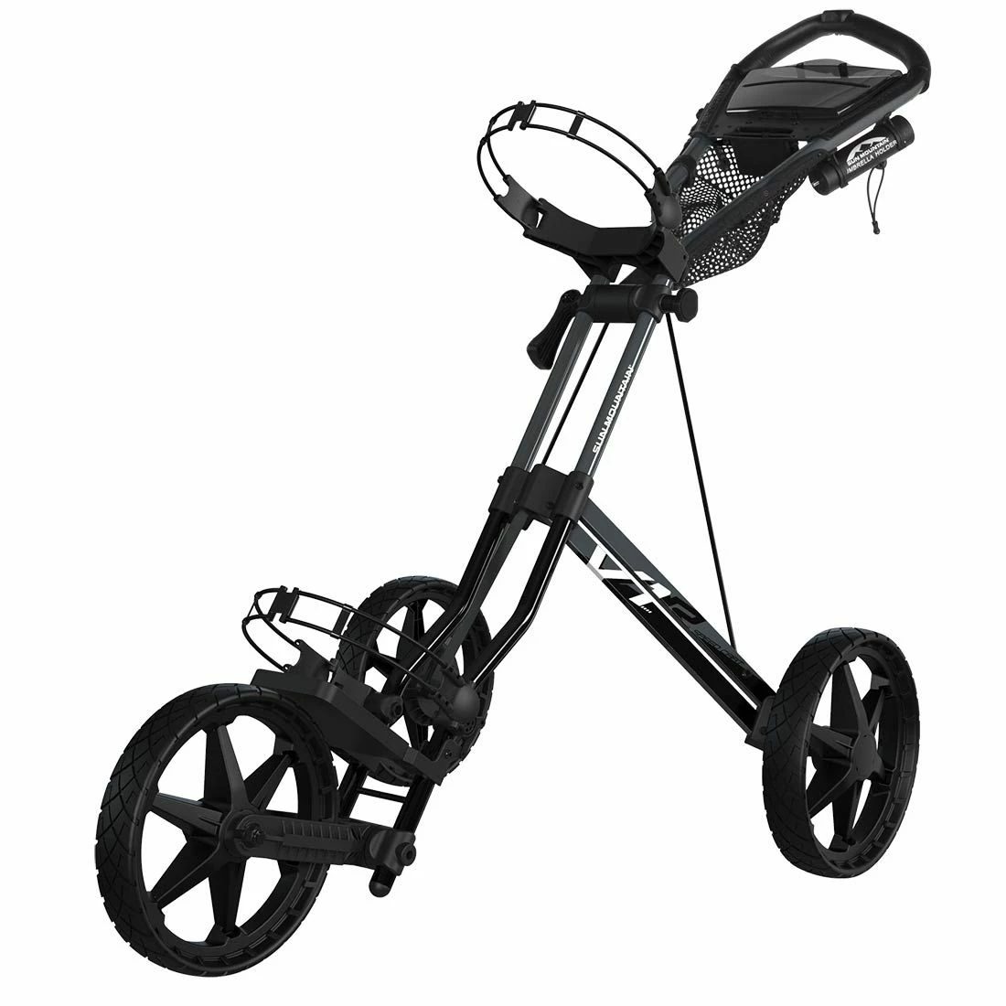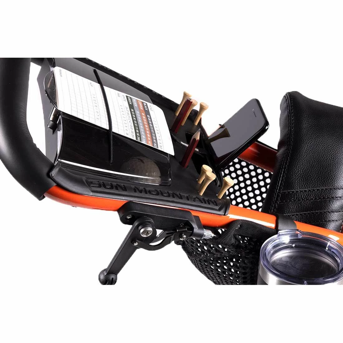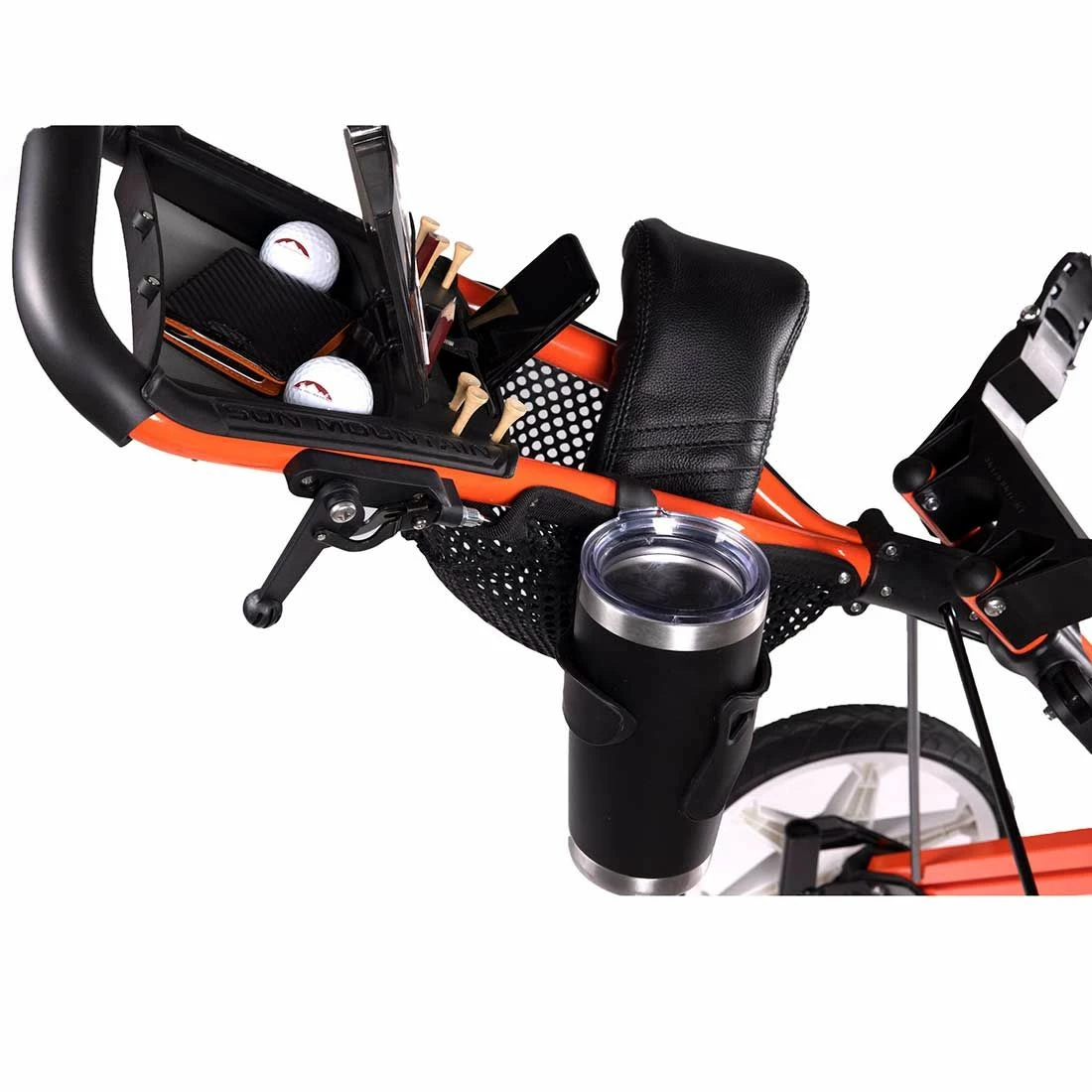 One of the most revolutionary products in golf, the Sun Mountain Speed Cart V1R now features an upgraded handle with mesh headcover tray.